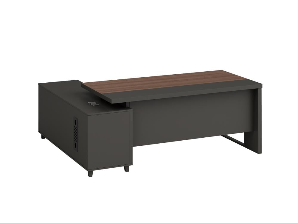 - السطح: سطح واسع يوفر مساحة كافية للعمل، مما يتيح وضع أجهزة الكمبيوتر، المستندات، أو الأدوات المكتبية الأخرى.